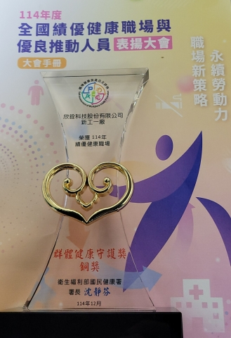 欣銓科技榮獲績優健康職場「群體健康守護獎-銅獎」暨「企業永續報告書揭露職業健康與安全績效主動評比」TOP 10%績優企業肯定